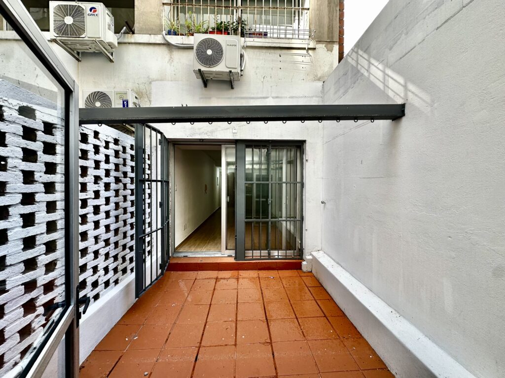 La unidad se desarrolla en planta baja, al contrafrente, ofreciendo tranquilidad y privacidad. Cuenta con un amplio patio de uso exclusivo, un diferencial poco frecuente en la zona, y un espacio independiente tipo barbacoa o depósito, con instalaciones sanitarias que permiten adaptarlo a distintos usos.